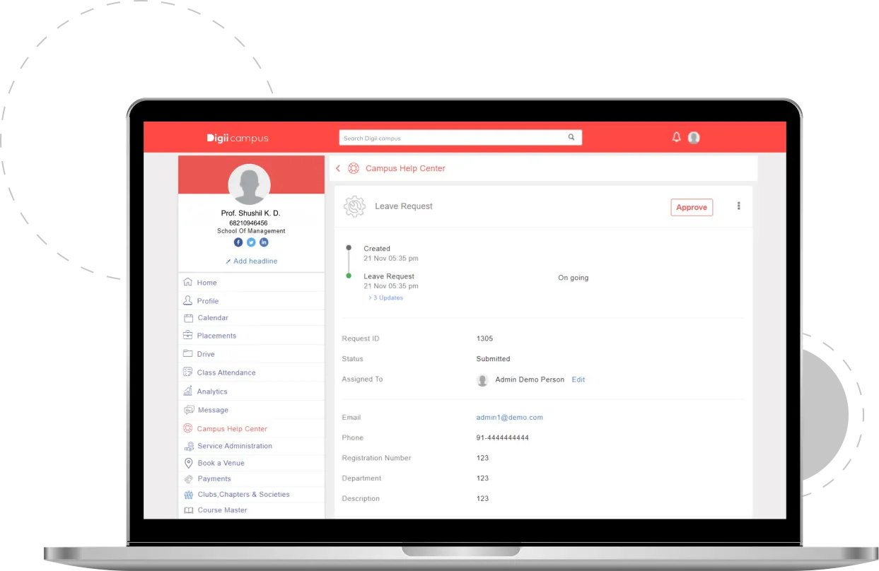 Automates campus workflows, centralizes requests, and digitizes documents for a smart, paperless educational environment.