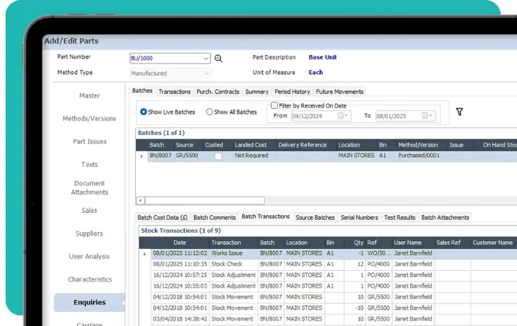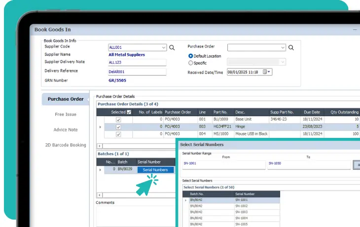 Record supplier serial numbers when receiving raw materials such as PCBs or castings into stock, and generate serial numbers for any of your in-house manufactured assemblies. Fully track manufacturing processes so that you have the traceability and confidence to know exactly which part, batch, and serial numbers have been used in your products, and where they have been shipped.