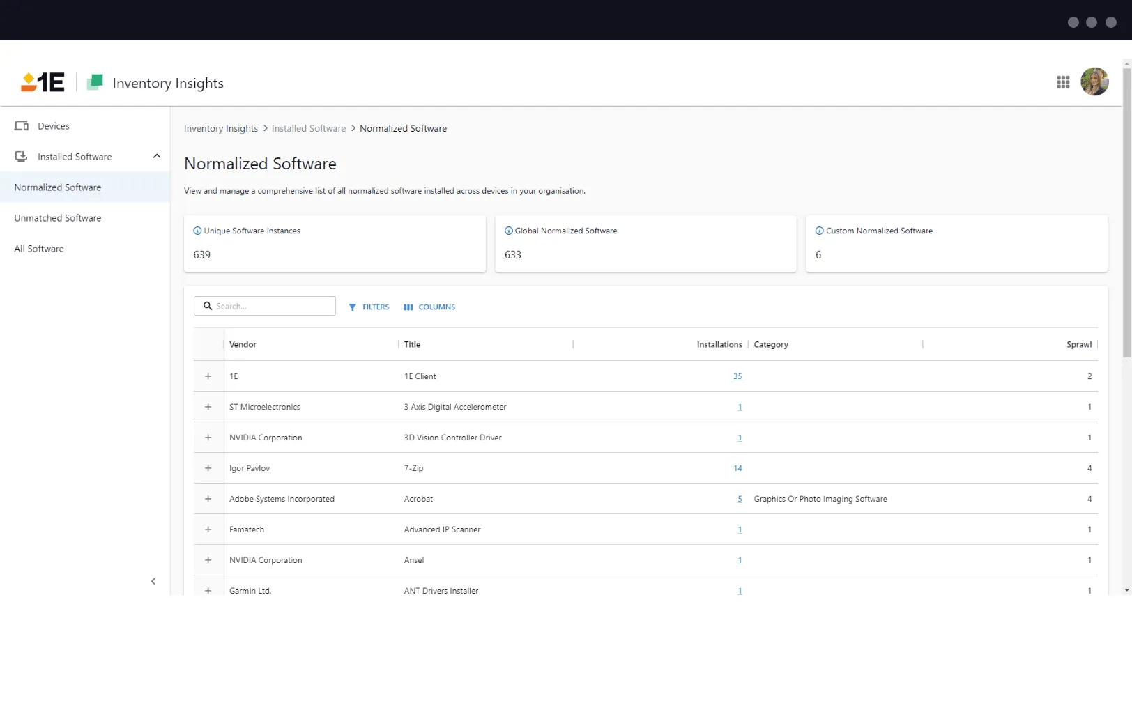 1E Inventory Insights normalizes your inventory and hardware data into consistent and clear vendor, product, and version records.