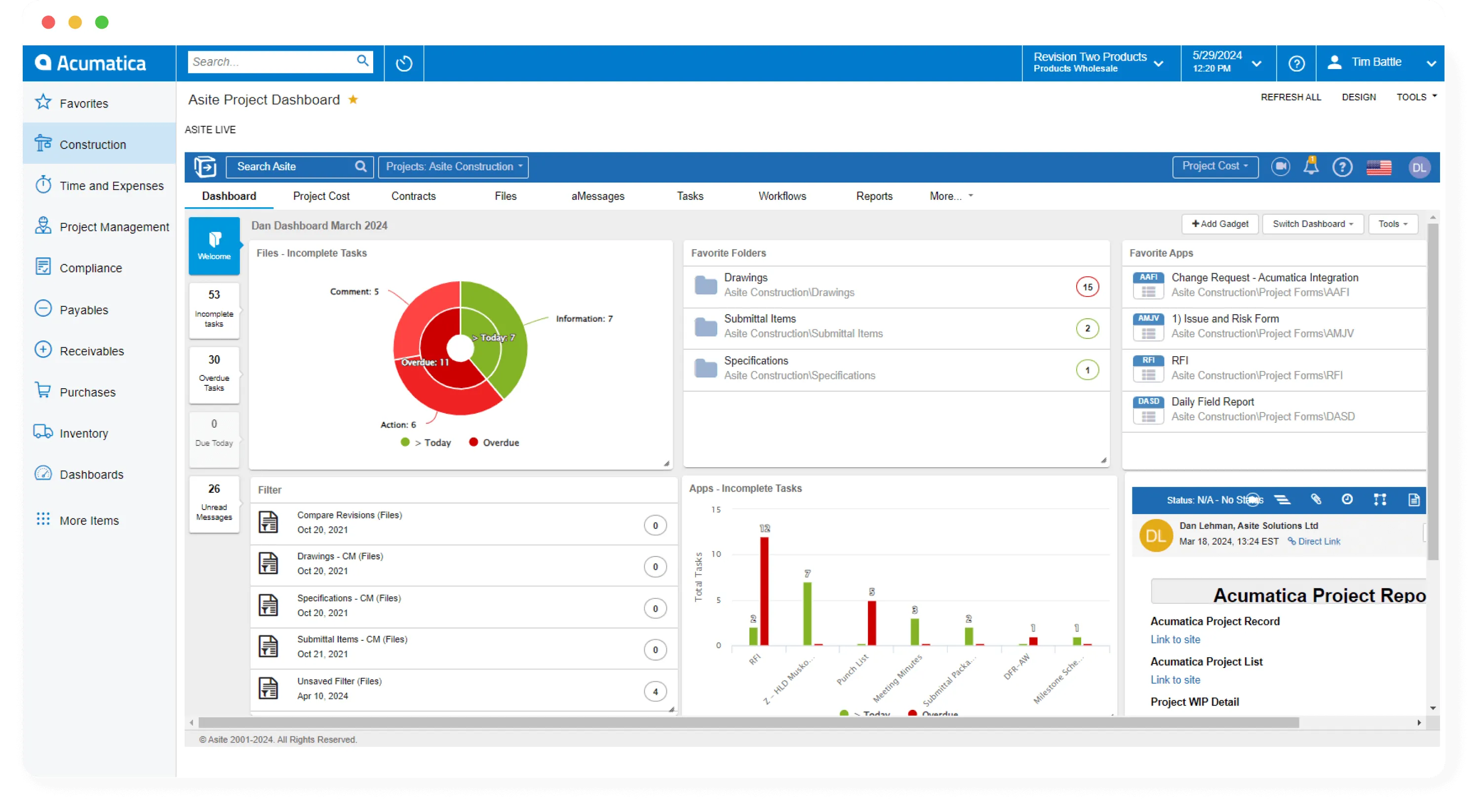 A tool for integrating project management with ERP systems, providing real-time access to project documents, plans, and financial data within Acumatica.