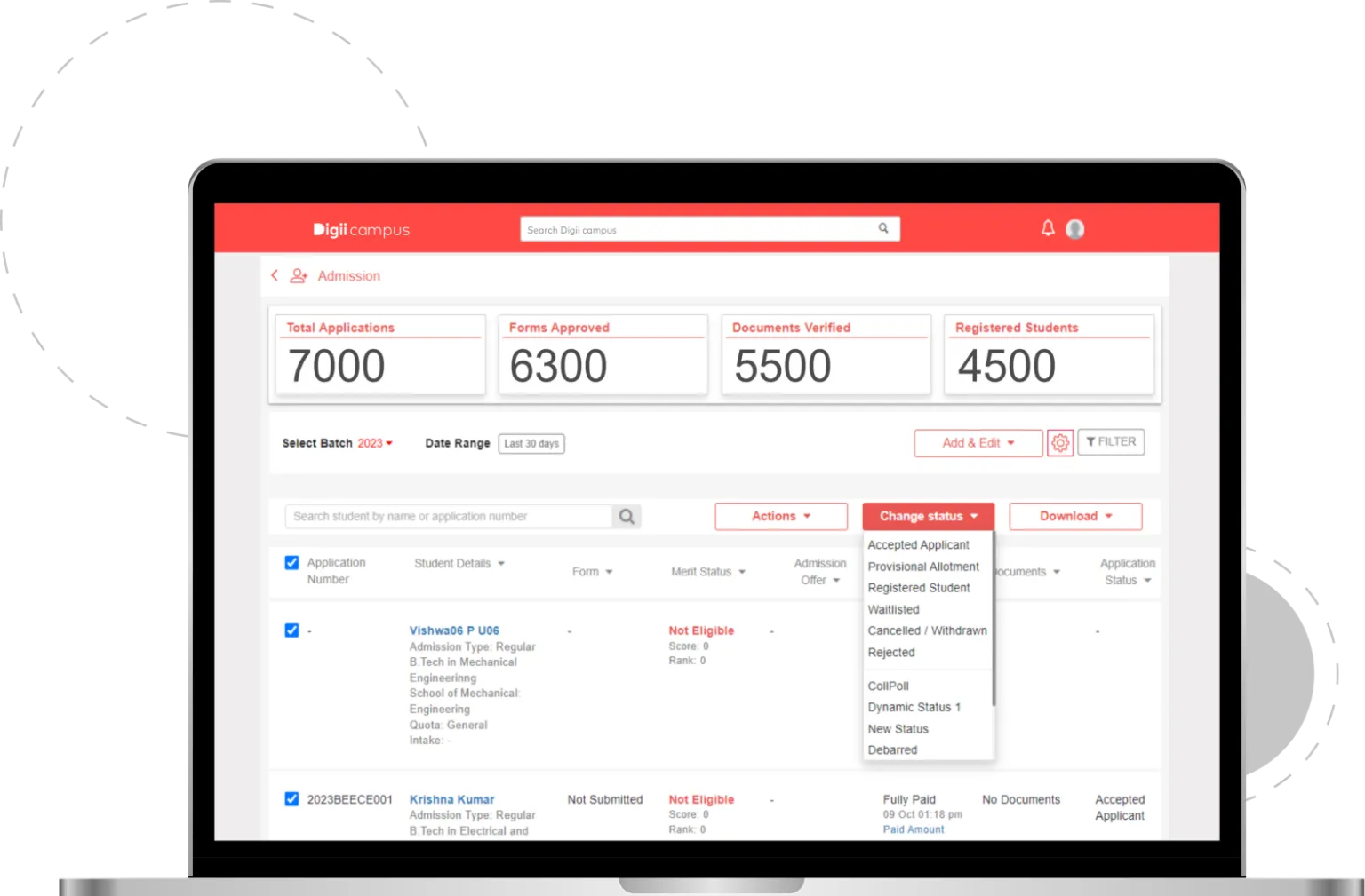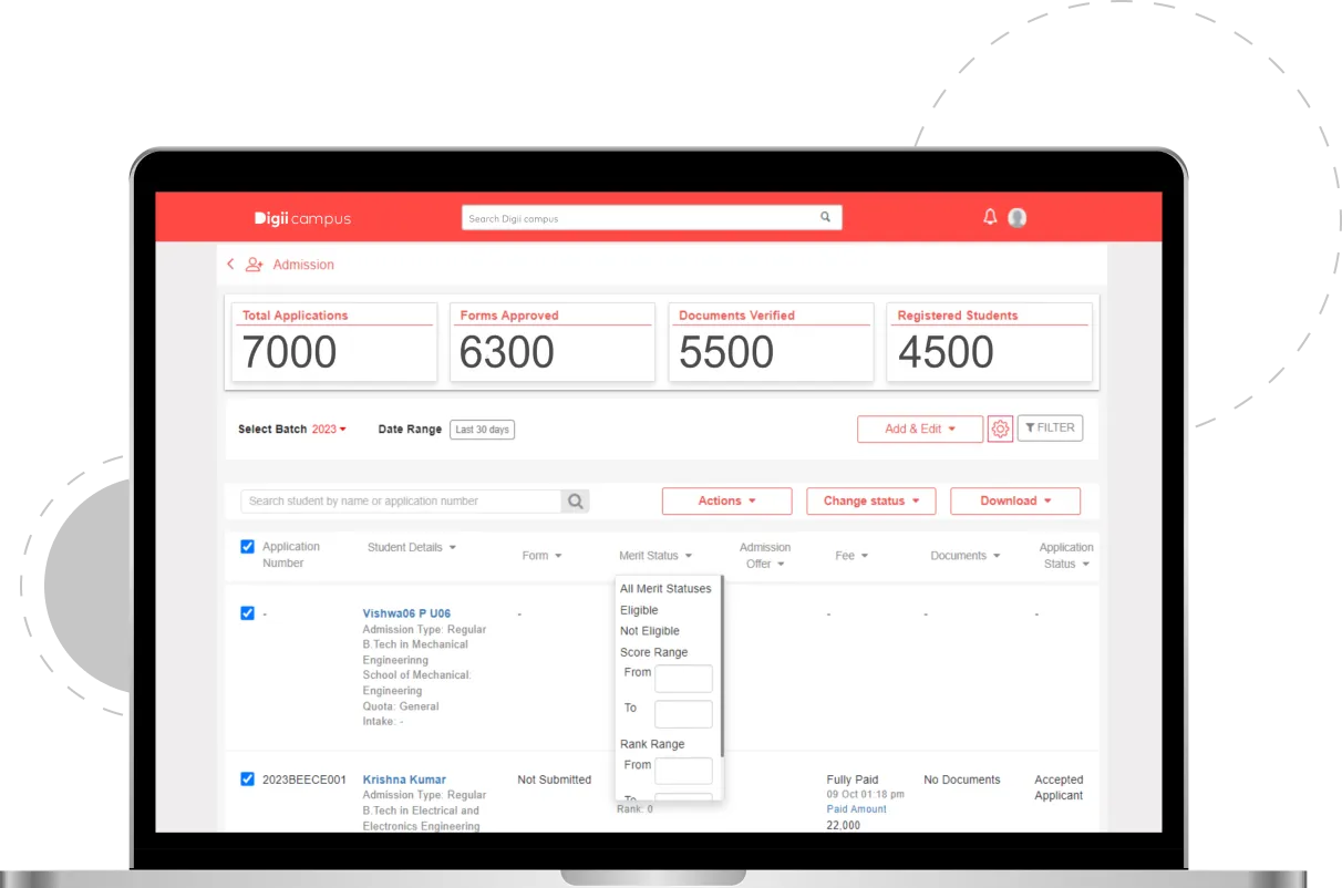 Digii's Admission Automation System empowers educational administrators to efficiently manage the entire student admission cycle, ensuring a hassle-free and effortless process. This system transforms higher education through innovative digital solutions, enabling institutions to streamline operations and enhance learning experiences. Key functionalities include managing admission inquiries, handling scholarship applications, initiating fee processes, and sending offer letters. The platform is designed for smooth functioning of the admission cycle, supporting institutions in their digital transformation efforts.
