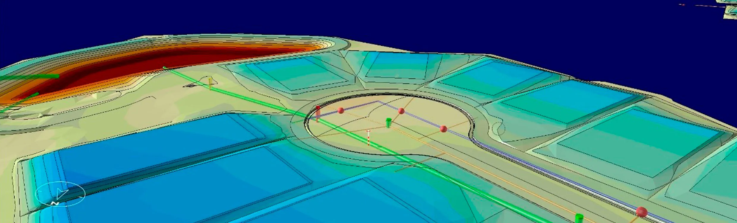 - Calculates stockpile volumes and over-excavation quantities.