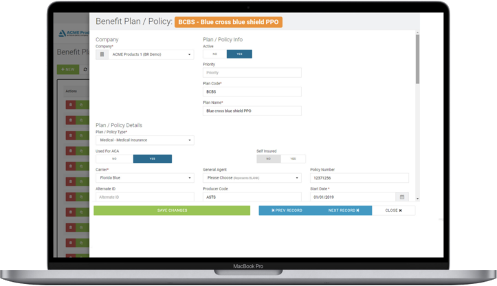 - Create and maintain benefit plan setups as well as employee benefit selections