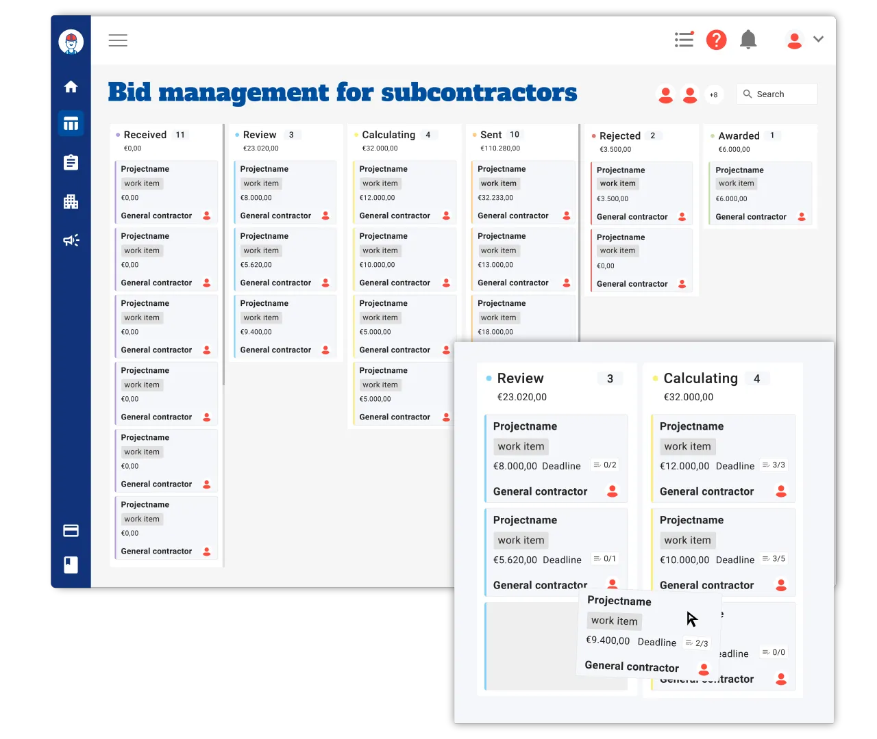- Drag & Drop Workflow: Move bids between phases with ease using a visual interface.