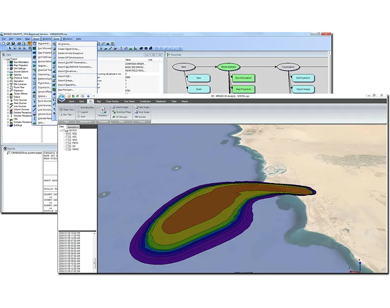 CALPUFF is an advanced air quality modeling system developed by Trinity Consultants. It is designed to simulate the dispersion of air pollutants in various atmospheric conditions, taking into account complex terrain, coastal regions, and long-range transport.