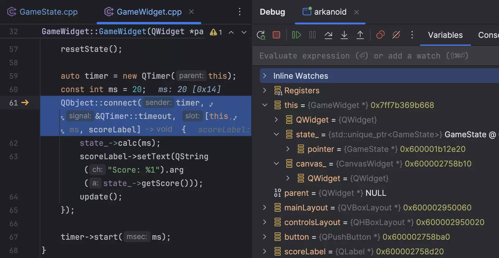 CLion’s debugger is your powerful assistant when it comes to investigating problems in applications and tests. Reveal what’s happening under the hood of your code with the memory and disassembly views. You can even attach to processes or debug core dumps and CMake scripts.