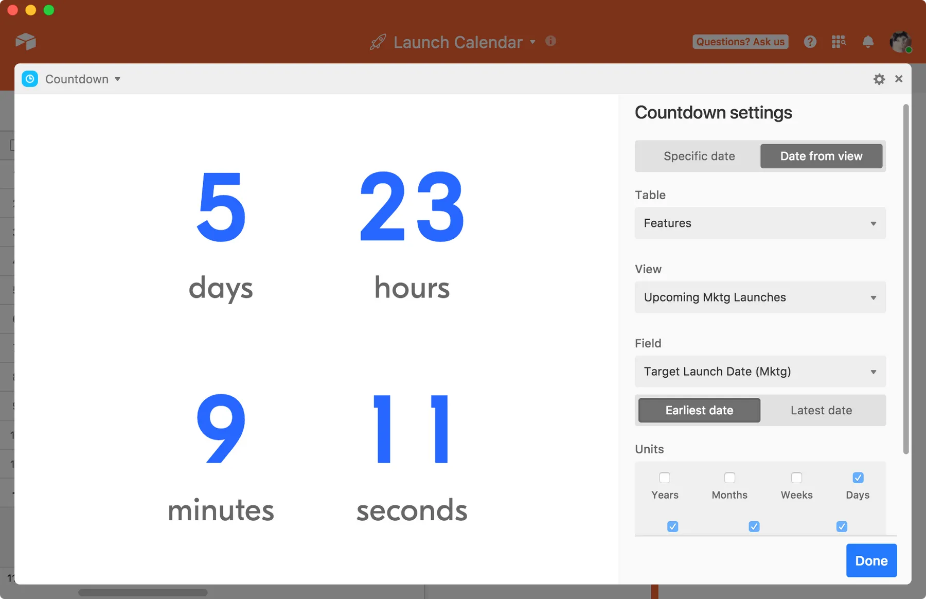 The Countdown app for Airtable allows users to set and display countdowns to specific deadlines, providing a streamlined way to manage and visualize time-sensitive tasks within their Airtable base.
