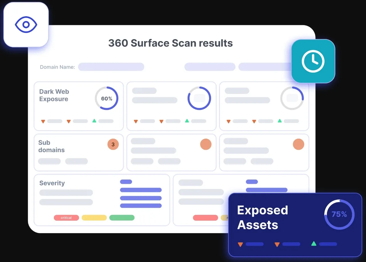 - Dark Web Monitoring: Scans for leaked credentials, PII, and brand keywords across dark web sources.