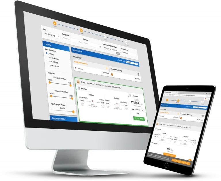 Whether PC, smartphone or tablet - more and more customers are booking their vacations online. You want to be part of this trend? Then simply integrate our Evolution IBE 3.0 into your individual website and get started with us. Benefit from maximum usability, fast loading times and numerous filter options.