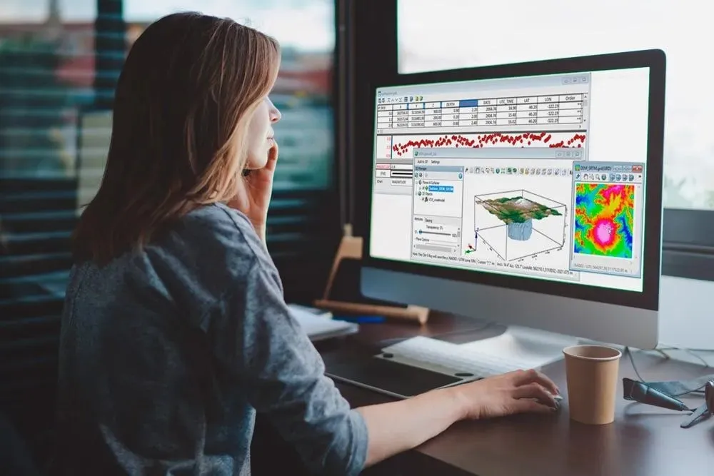 View your data in profiles, maps, and in 3D models to gain a deeper understanding of the data and your project area. Apply raster colours and shading to customise appearance and emphasise details. Compare multiple datasets side-by-side or adjust the transparency of your data layers and overlay them to identify the subtle relationships between the different datasets.
