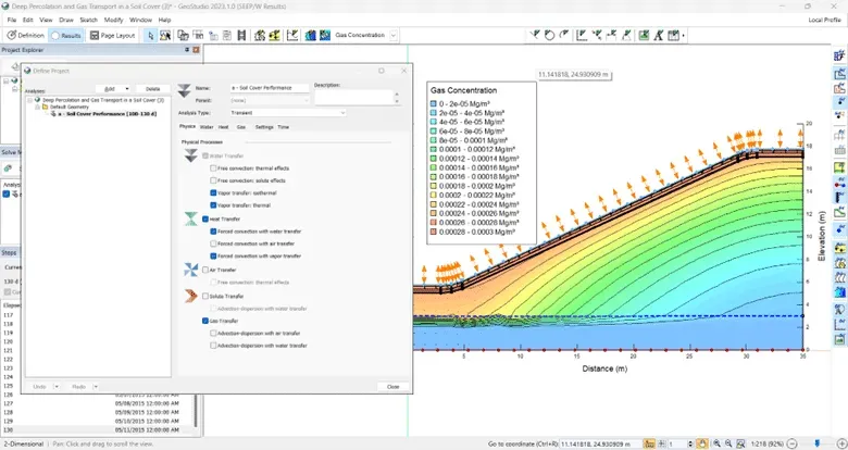 Explore complex geotechnical processes using a number of analyses, geometries, and dimensions in a single project file.
