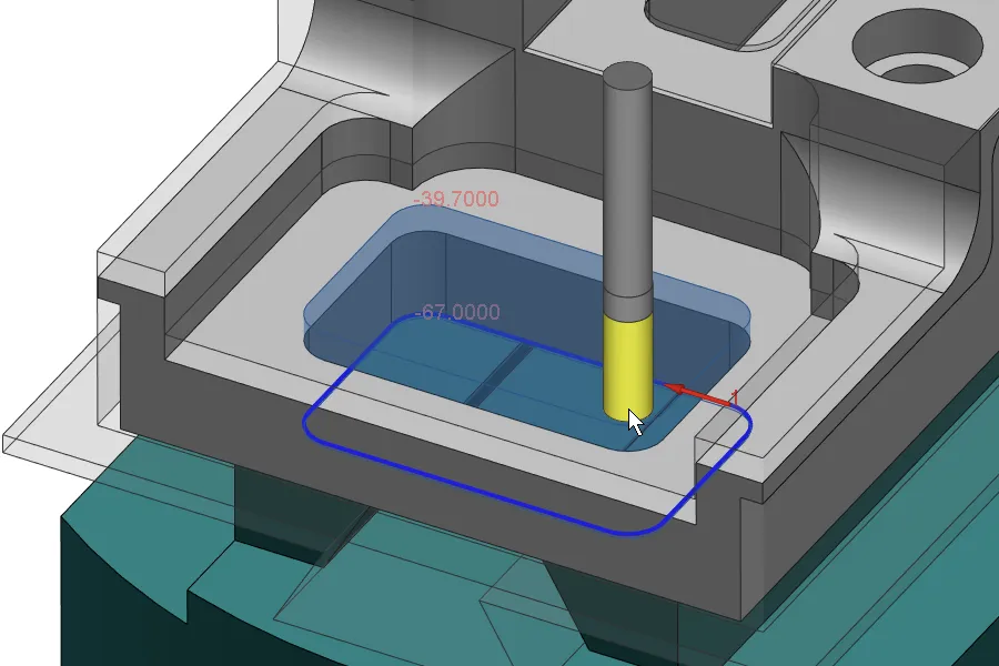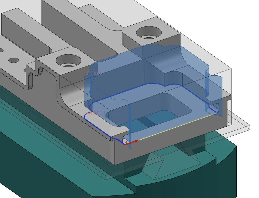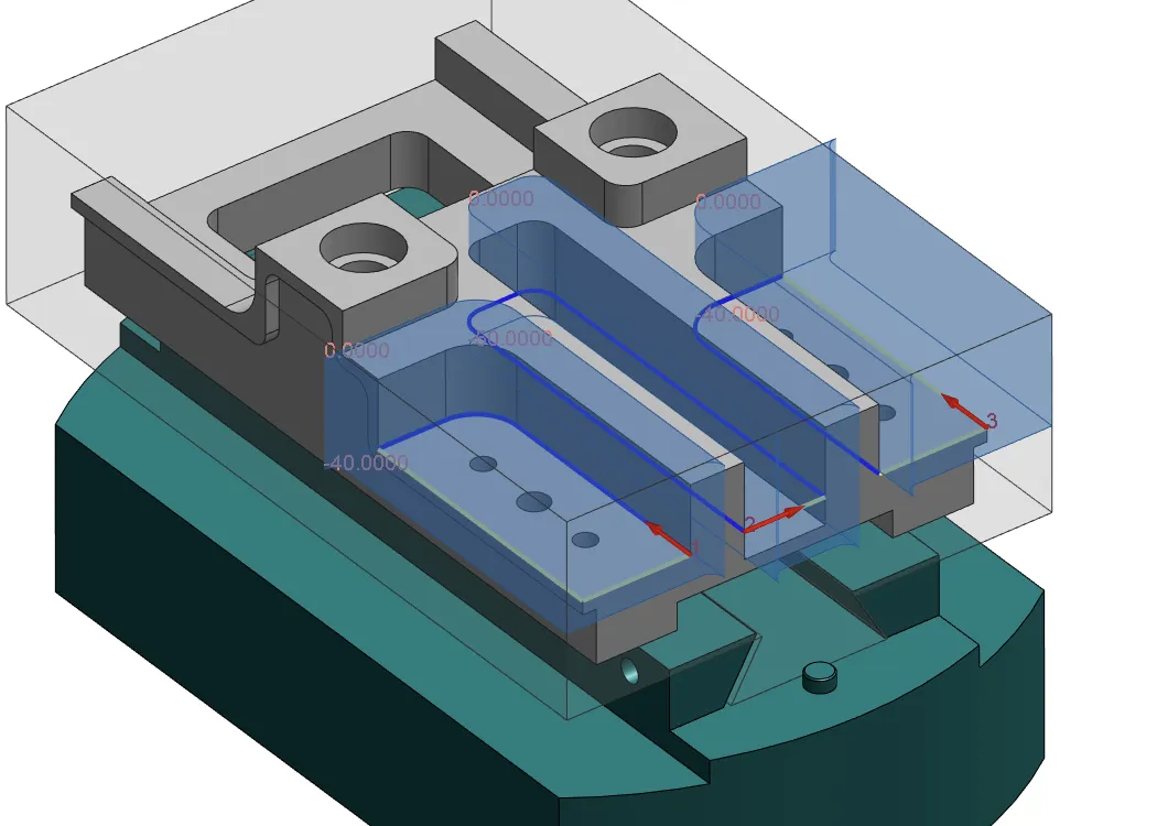 - Optimized rest roughing and bottom finishing of 2.5D features with various strategies.