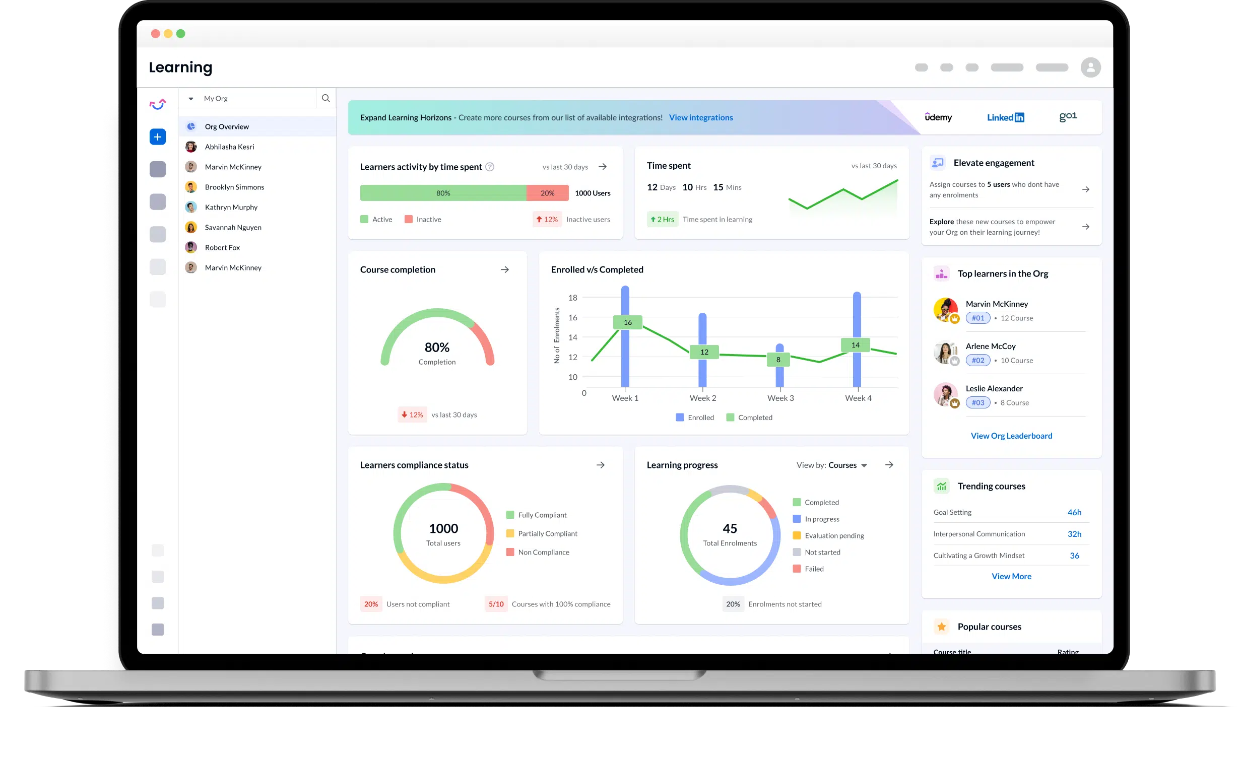 Engagedly’s AI-powered LXP analyzes employee data and learning preferences to deliver truly personalized learning. Employees receive content in the right format, at the right pace—ensuring faster upskilling and peak performance.