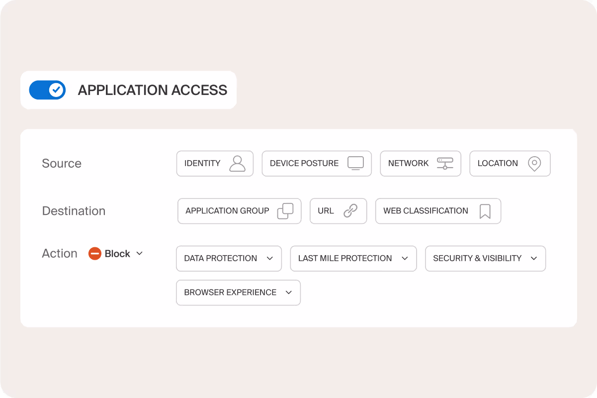 - Built-in ZTNA access: Direct, secure connectivity to private networks without VPN on day one.