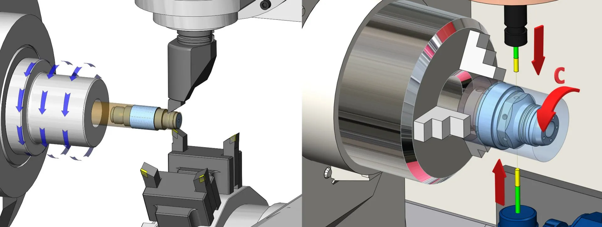 Modern Mill-Turn CNC centers are designed to combine as many milling and turning operations as possible, to manufacture workpieces at maximum productivity. Manual CNC programming of sophisticated parts on complex machines, directly at the machine controller is – if at all humanly possible – unproductive, error-prone and expensive.