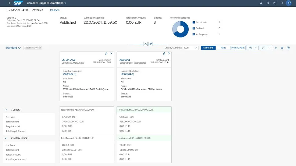 - Engage in multiple rounds of negotiation, evaluate and compare supplier bids, and award business