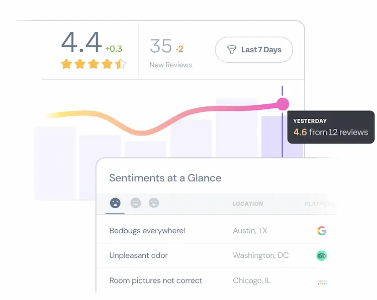 AI-driven reputation management platform to monitor and respond to reviews across 100+ channels.