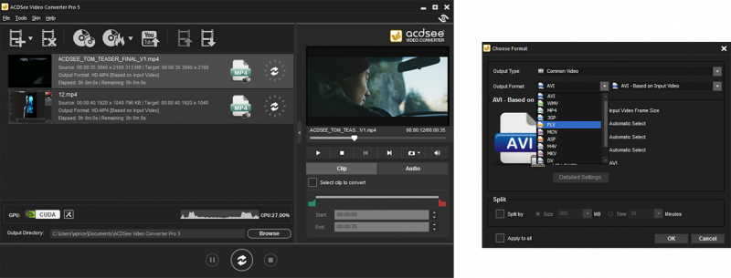 - Automatically trims the edges of input videos when their aspect ratio does not match the output profile, ensuring full screen utilization on the target device.